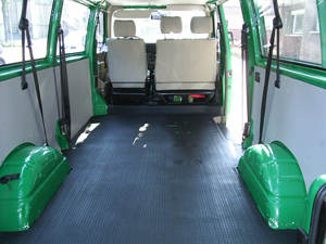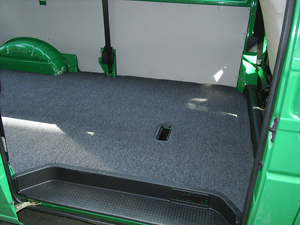 Der Bodenbelag bestand aus Gummi und war erstens irgendwie hässlich und zweitens mit irgendwas beschmiert worden. Das hieß also jedes Mal beim Einsteigen „Vorsicht glatt und rutschig“ Ich tippe mal, dass es entweder Cockpitspray oder Altöl war. Jedenfalls war es schwarz, schmierig und glänzend. Da der Belag aber als Untergrund drin bleiben sollte, hieß es also raus damit und putzen. Die Sitze waren schnell ausgebaut und der Belag zusammen gerollt. Nun hieß es, den irgendwie sauber zu bekommen. Spülmittel und Waschmittel waren nun für zwei Tage mein Werkzeug.