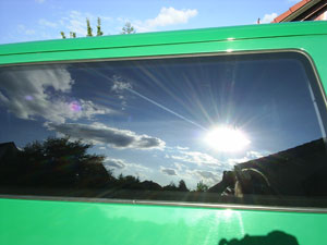 Auf dem Heimweg fiel mein Blick nach rechts. Ich dachte noch so „Mensch der grüne VW-Bus steht da nun schon mindestens ein halbes Jahr“. Irgendwie dachte ich „guck ihn dir an, schau einfach mal, was das für einer ist“. Gedacht getan. Auf den ersten Blick sah der wirklich gut aus. Rein äußerlich und auch im Innenraum sah er wirklich noch Top in Schuss aus. Wo war der Haken ???? Nachdem ich nun ein paar Minuten um das Auto gegangen war, kam doch wirklich ein Verkäufer und fragte ob er helfen könne. Klar konnte er. Er erzählte mir nun grob zusammen gefasst, welche Laufbahn dieses Auto bereits hinter sich hatte. 1993 erstmals zugelassen, diente er viele Jahre der Polizei. Er wurde gut gepflegt und wenig gefahren. Für sein Alter war er wirklich gut in Form.