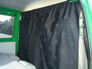 Außerdem habe ich nun den ersten Vorhang ins Auto montiert. Dazu habe ich mir einfach eine Metallstange zurecht gebogen und an den Enden mit Winkeln im Auto befestigt.